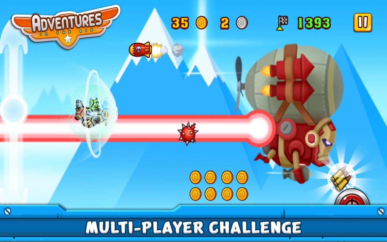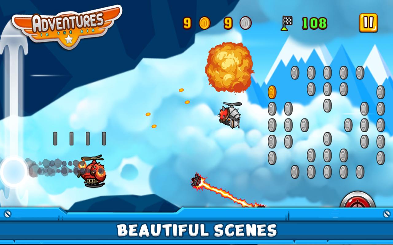 Adventures In the Air is a unique sky adventure, combining a traditional endless running game with an exciting air combat shooting experience. The stunning visual graphics, along with great sound effects and animations, makes it a game you cannot afford to miss.