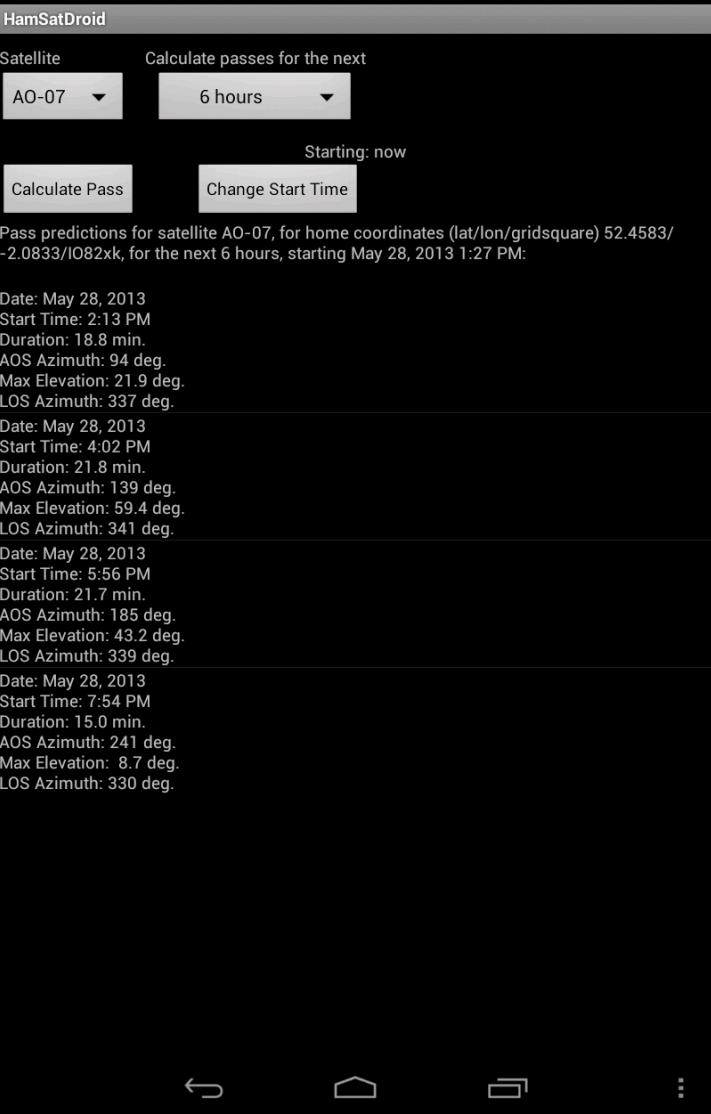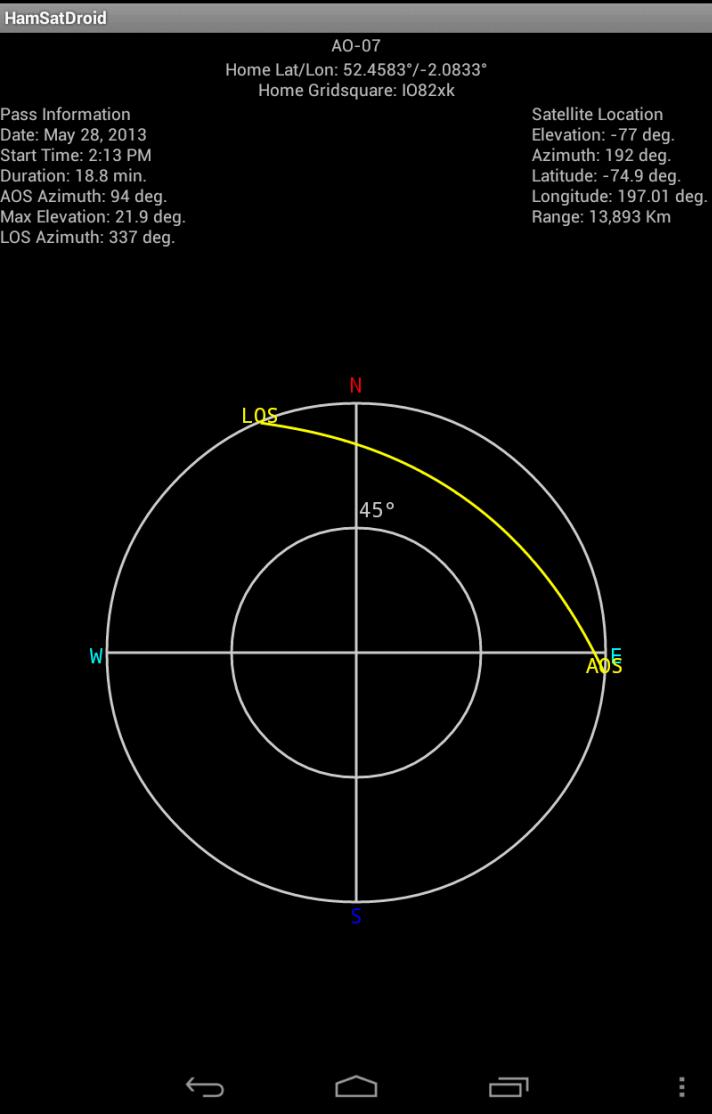- Update keps from a file on SD card or directly from AMSAT's webpage using your phone's internet connection
