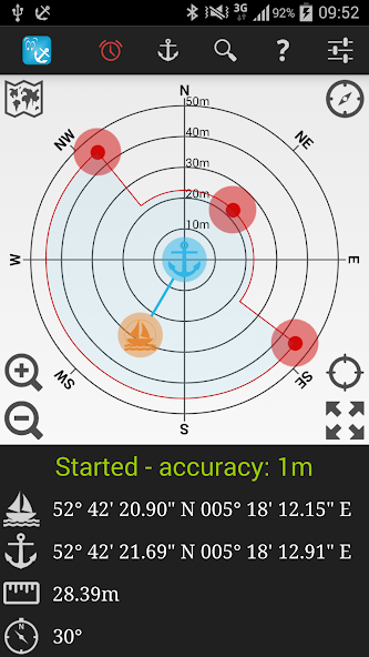 + Set advanced drift radius, very useful when there are many boats on the anchorage or you anchoring between mooring boys