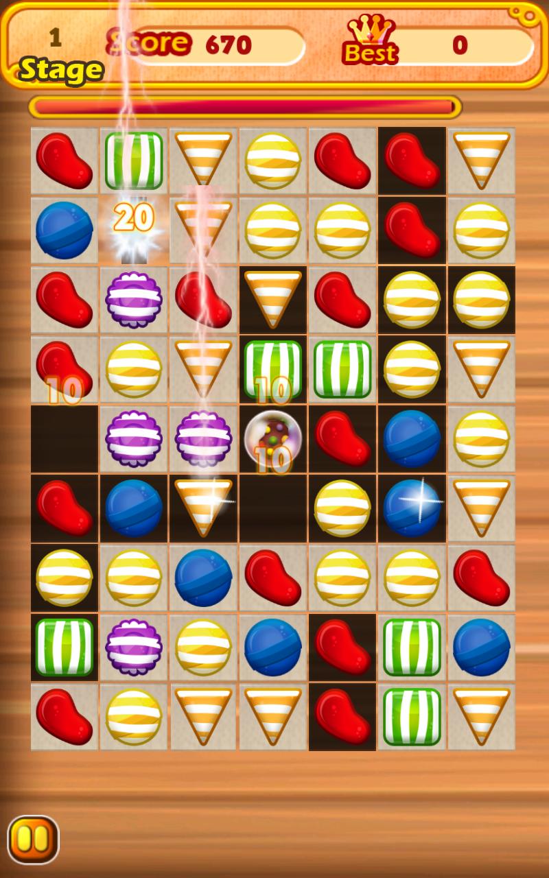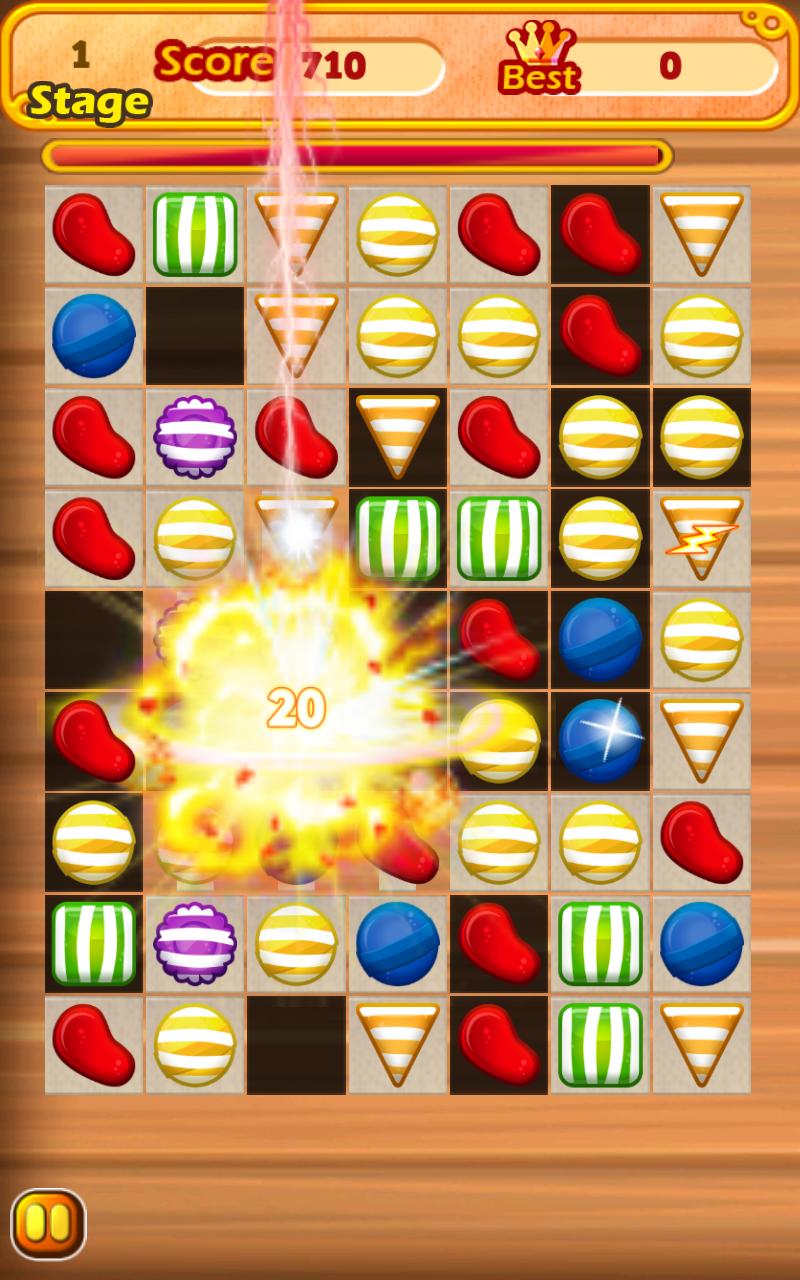● ترتيب 5 نفس الحلوى ، التي تحطم عقبات عن طريق الصدفة ويبدو أن ملف تعريف الارتباط السحري يدمر جميع الحلوى بنفس اللون.