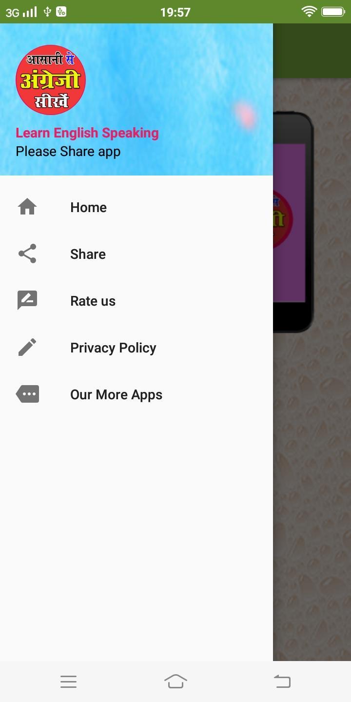 يحتوي هذا التطبيق أيضًا على أمثلة على الجمل اليومية القابلة للاستخدام باللغة الهندية والإنجليزية لممارسة التحدث باللغة الإنجليزية.