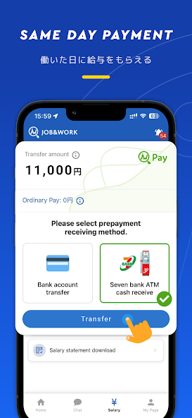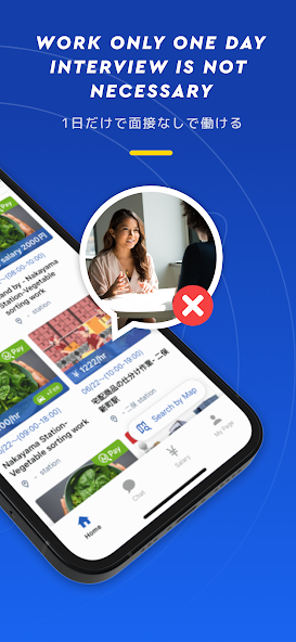 Job&Work هو تطبيق للأجانب الذين يعيشون في اليابان للعثور على الوظيفة المثالية لهم. يمكنك العمل غدًا ، يوم الجمعة المقبل ، أو في أي وقت دون أي مقابلات أو إجراءات. فقط سجل وتقديم! يمكنك العمل في أي وقت وفي أي مكان.