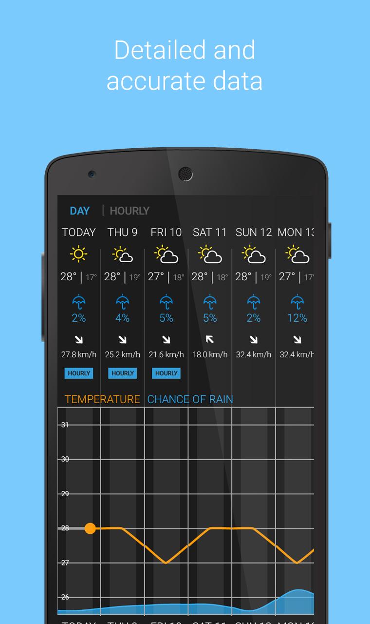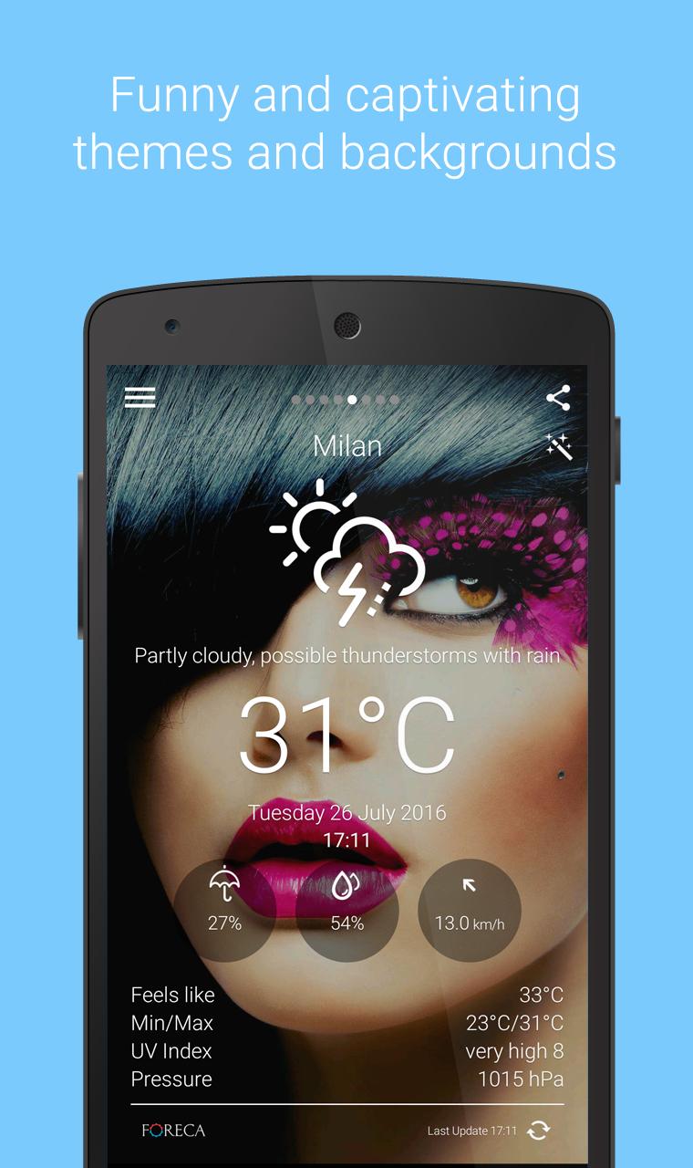 إلقاء نظرة سريعة على توقعات الطقس مباشرة على الشاشة الرئيسية لهاتفك الذكي بفضل خمسة واجهة مستخدم مخصصة تقدمها Libero Meteo . تعرض أجهزة التشغيل معلومات حول درجة الحرارة ، Min و Max ، فرصة للمطر والرطوبة والرياح لمواقعك المفضلة ، لهذا اليوم والأيام التالية ، مع تصميم شخصي.