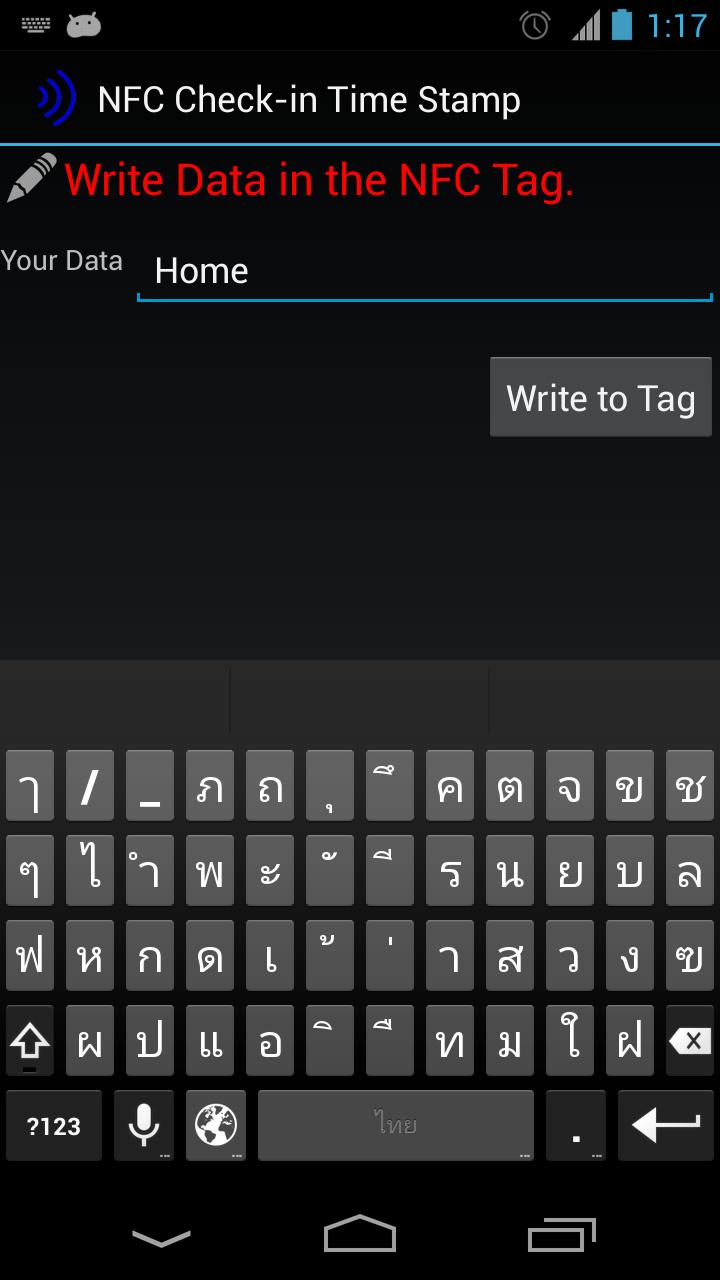 http://androidcontrol.blogspot.com/2013/05/android-nfc-check-in-tim-tamp.html