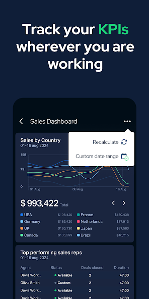 باستخدام هذا التطبيق ، يمكنك الإبلاغ عن أنشطة المبيعات وكذلك رؤية جميع لوحات المعلومات الخاصة بك. لم يكن من الأسهل متابعة المبيعات أثناء التنقل أو إخبار جميع موظفيك عن هذا البيع المذهل الذي قمت به للتو!