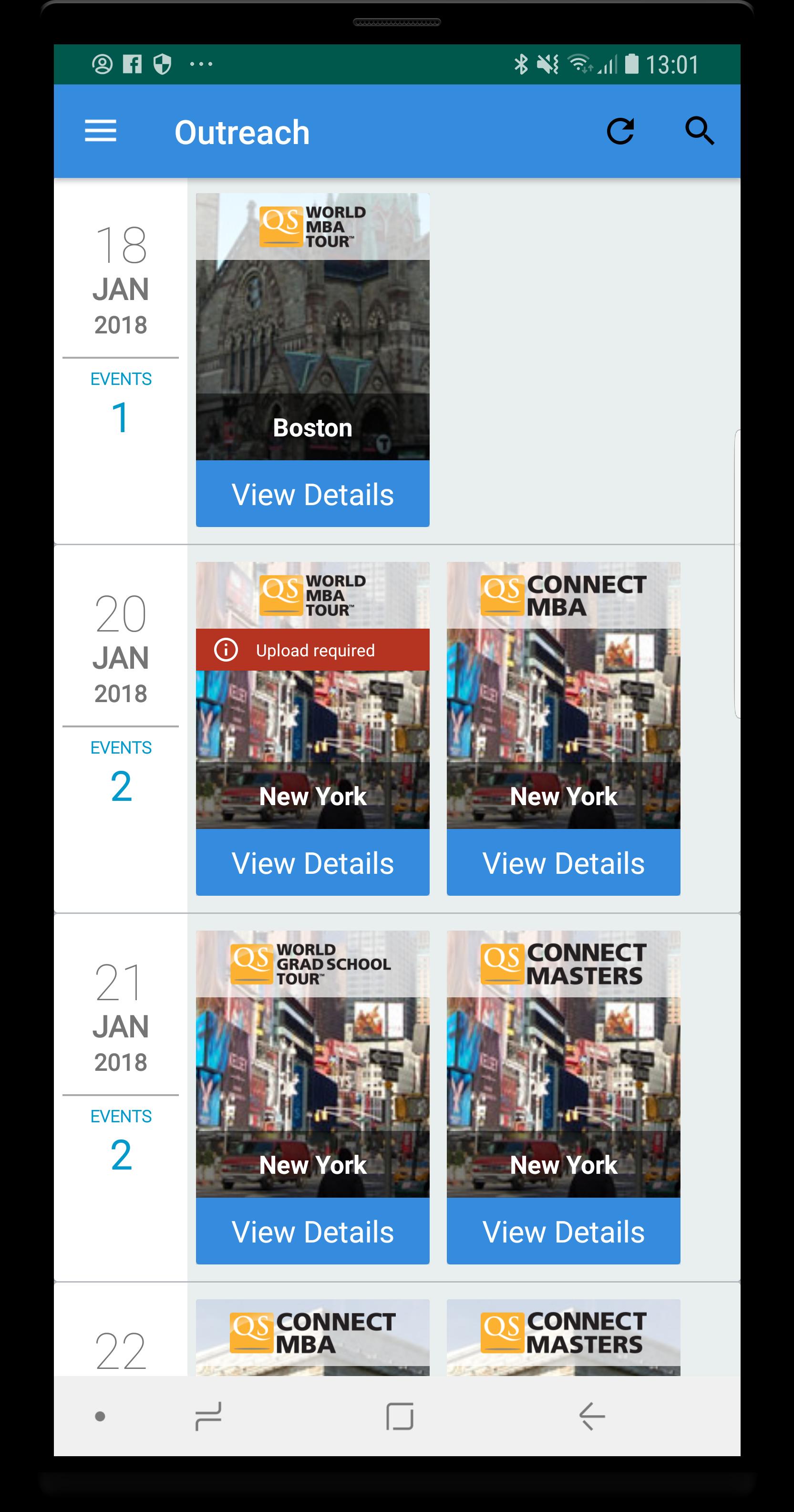 إدارة أحداث QS الخاصة بك عبر تطبيق QS Outreach الجديد
