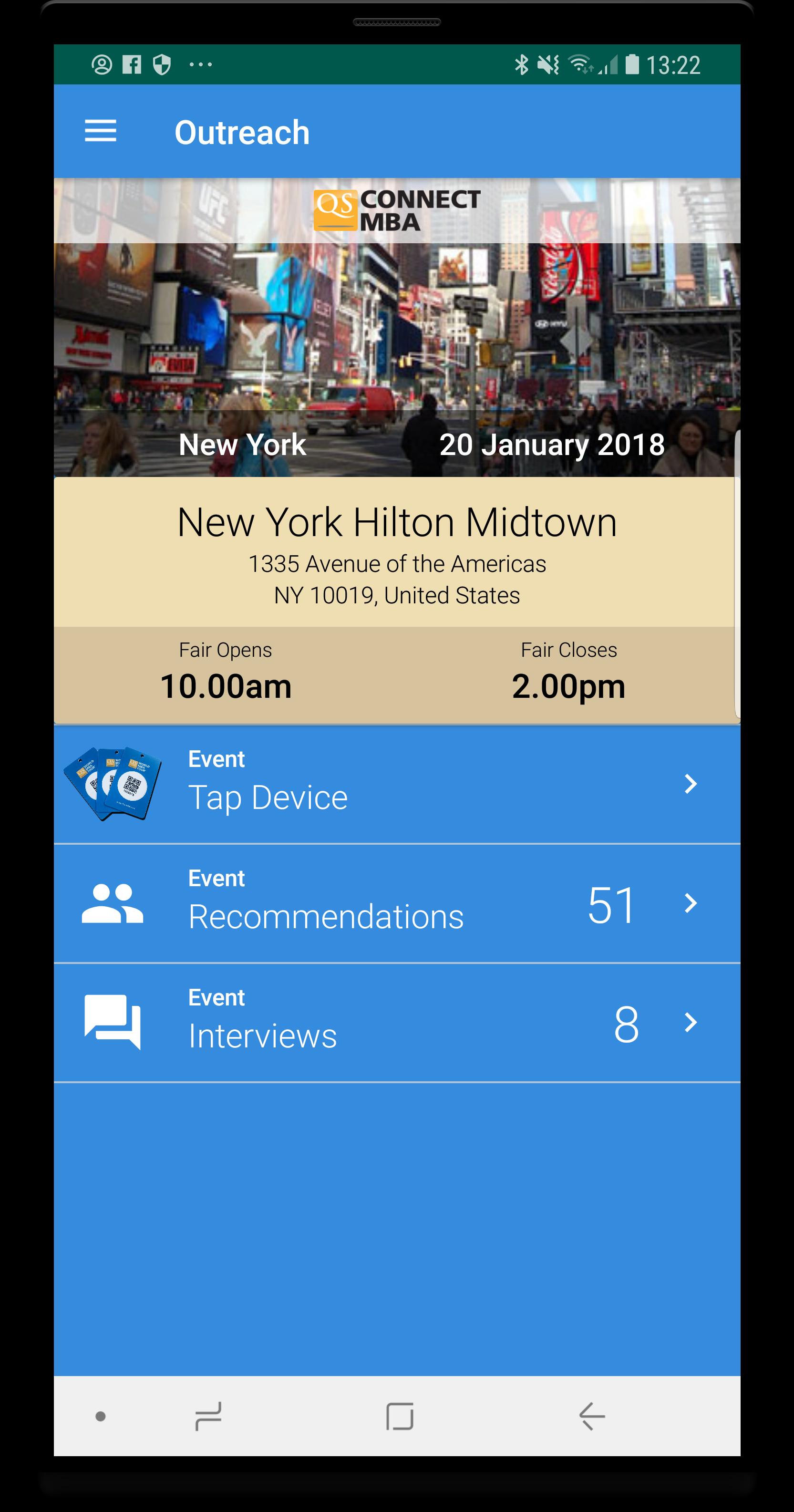 يمكّنك تطبيق QS Outreach الجديد من اتخاذ اتصالات في أحداثنا وإدارة MBA Connect و Connect Masters مشاركة