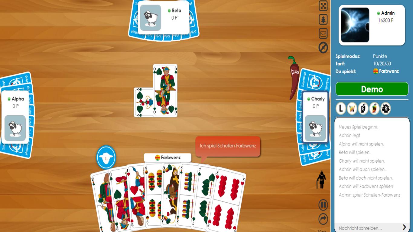 لعبة البطاقات البافارية التقليدية Schafkopf كتطبيق متعدد اللاعبين وتدريب