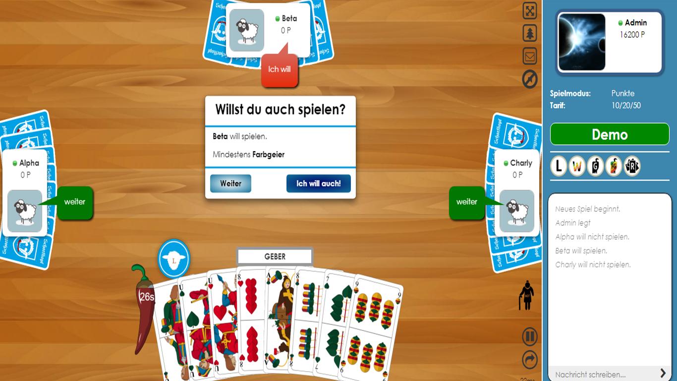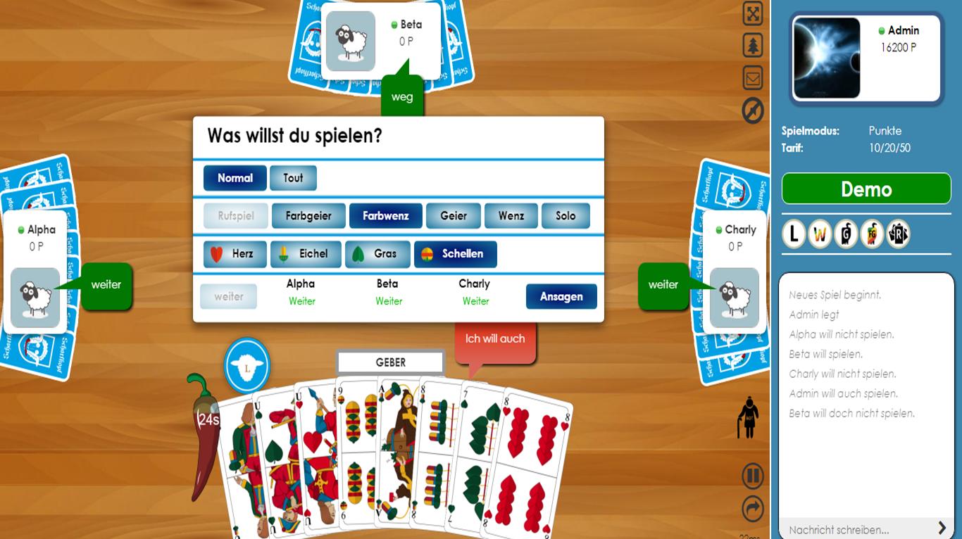 تفضل بزيارتنا على https://www.schafkopf.de للتواصل مع اللاعبين الآخرين وإبلاغك بالتطورات المستمرة والمخطط لها.