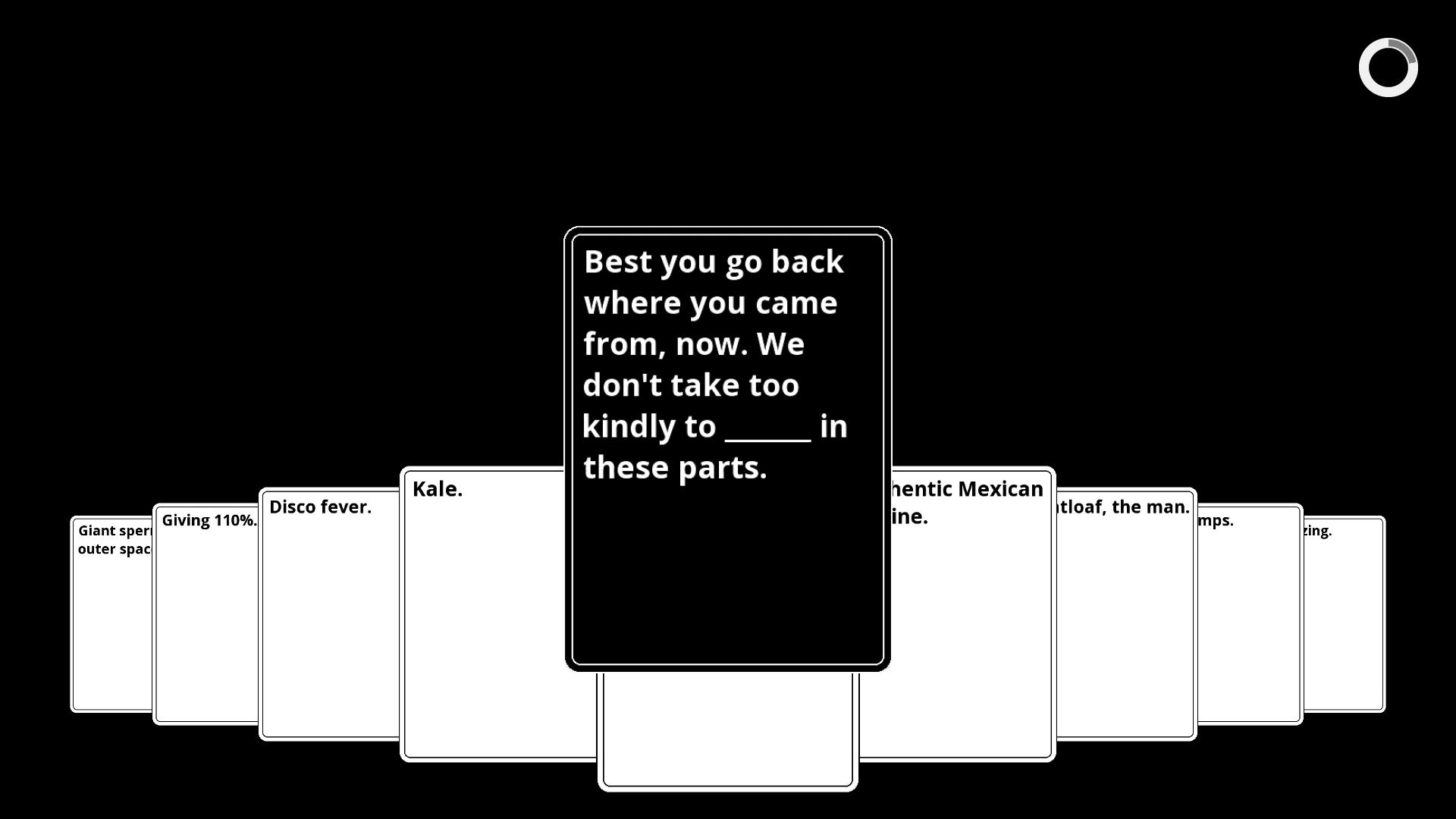 هذا حاليًا هو بناء تجريبي لتنفيذ البطاقات ضد الإنسانية مثل اللعبة.