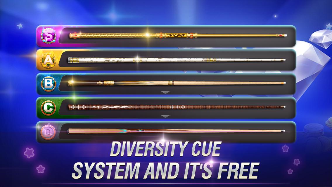 - Different playing modes: 8 ball pool, 9 ball pool & Cards Billiard