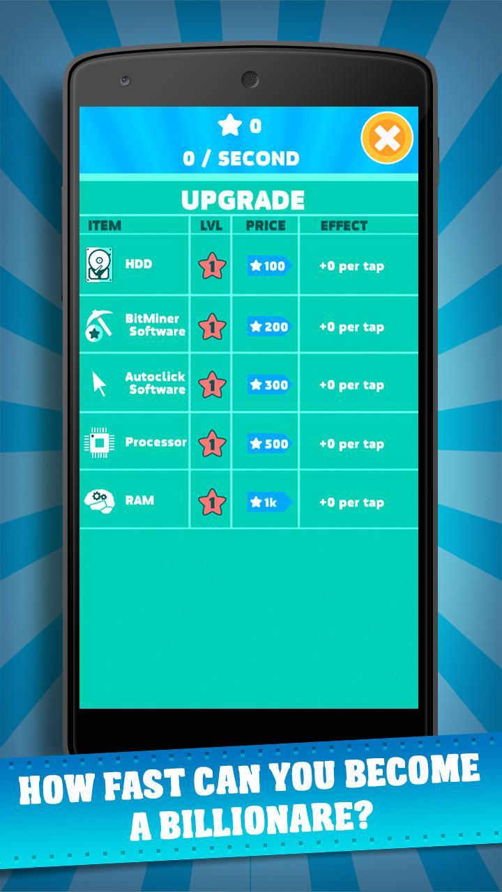 Don’t forget to buy upgrades to increase your number of coins! Mine some bitcoins! Create your own money empire, make smart investments and win! Become a bitcoin multi millionaire!