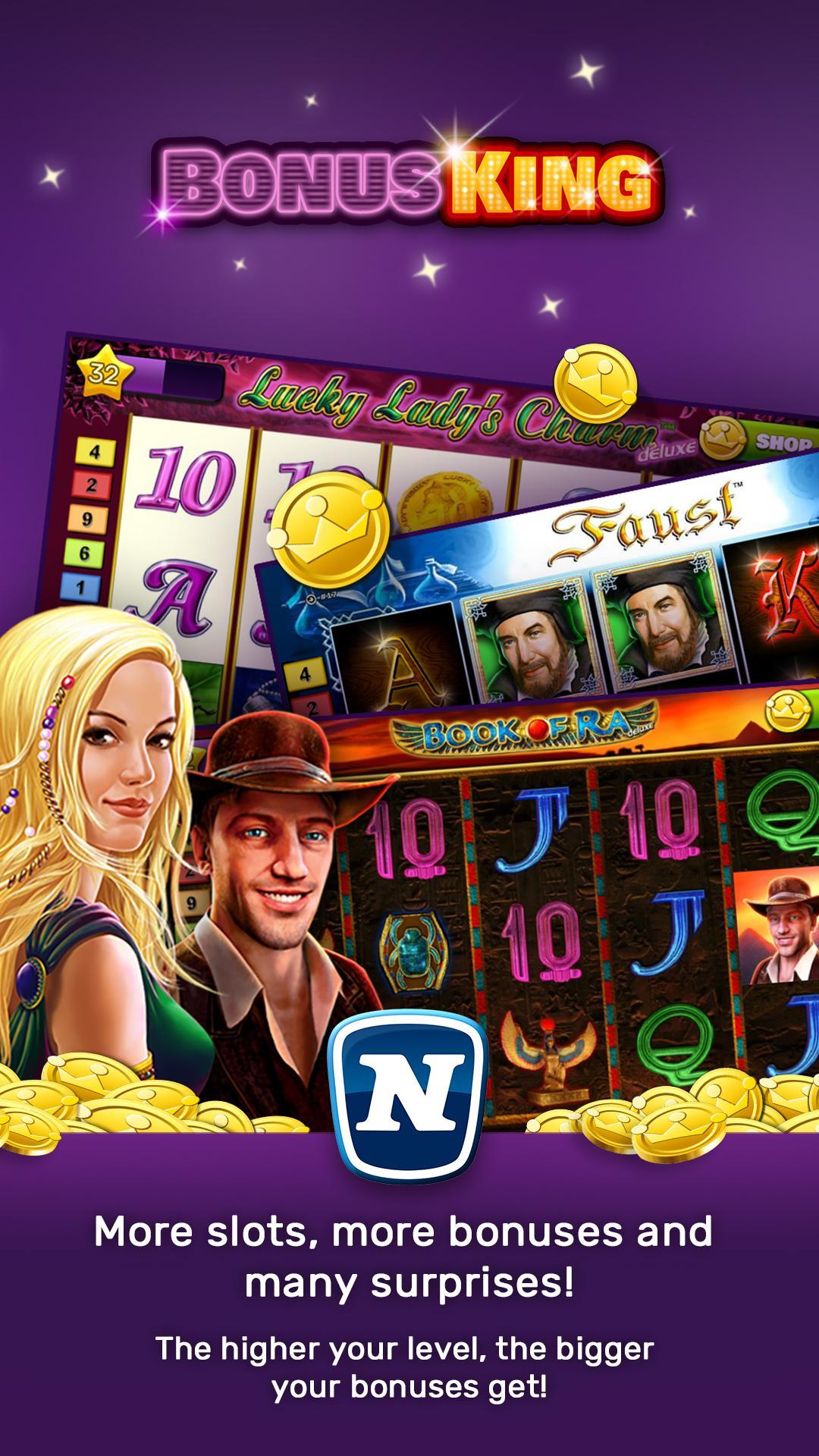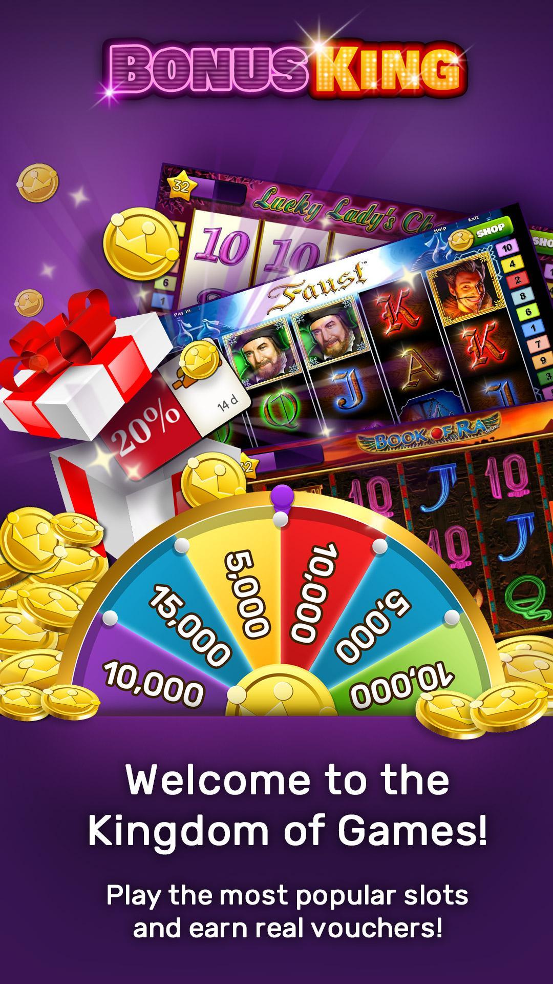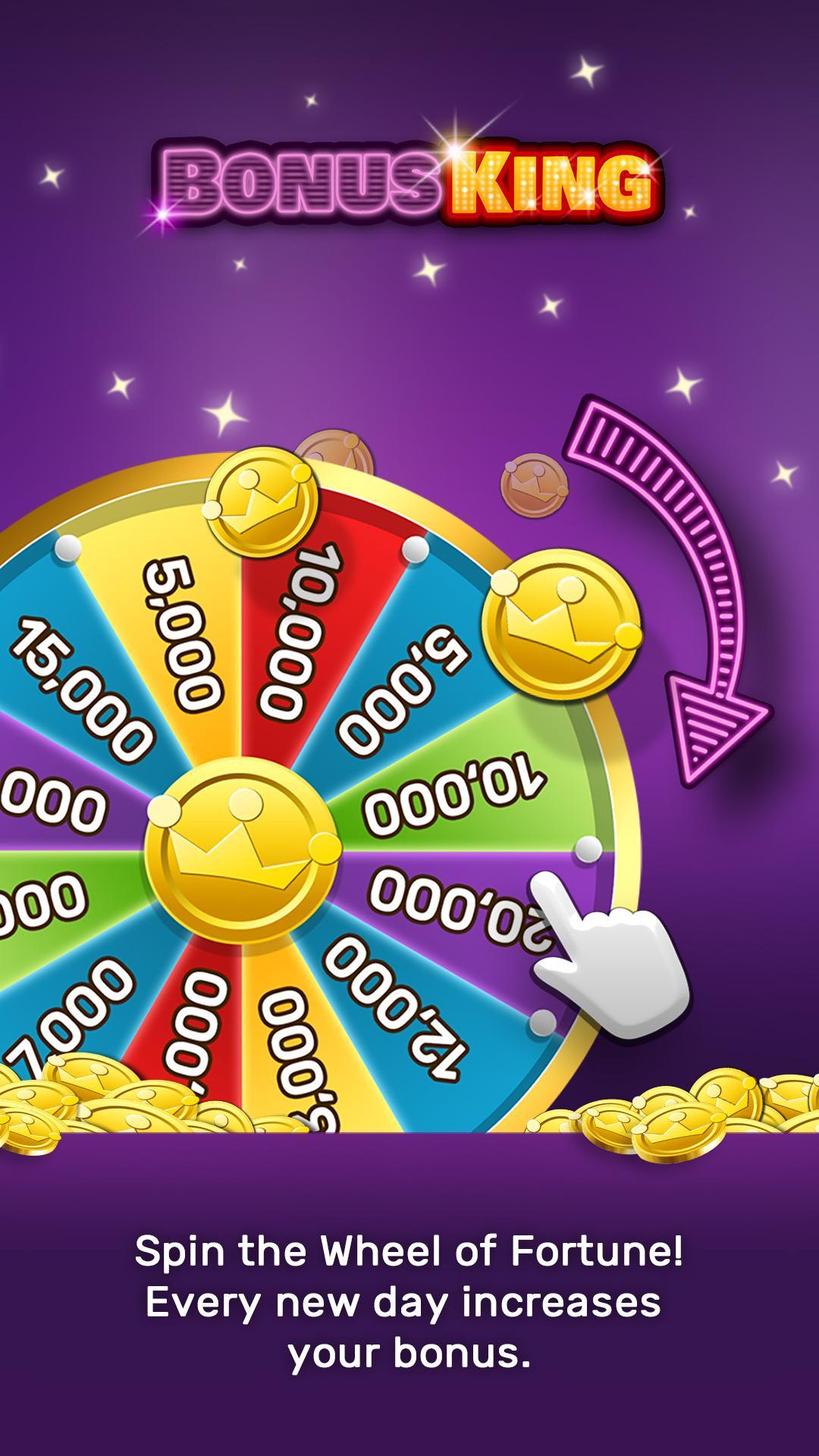 BonusKing is a free online game of chance for entertainment purposes only. You cannot win real money or real items/services by playing the slot machines. The virtual currency used in this game is called “Coins” and can be purchased in the “Shop” using real money. Coins cannot be exchanged for cash or be paid out in any form. They can only be used to play this game. The app and the games are intended for an adult audience.