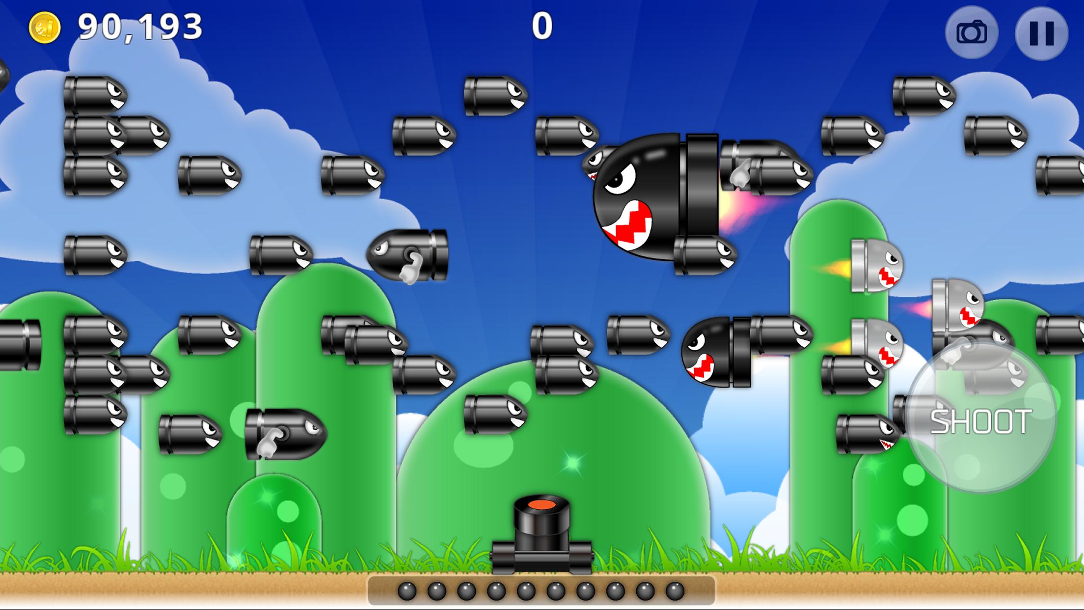 This is a shooting casual Game which is exciting and easy to play. Each round there are 10 bullets for you to shoot the enemies appearing from both left and right sides of the screen. While one enemy is wiped out, that bullet will split and spread more bullets to surrounding which will eliminate more enemies. The chain effect will make your blood boil and full of sense of achievement.