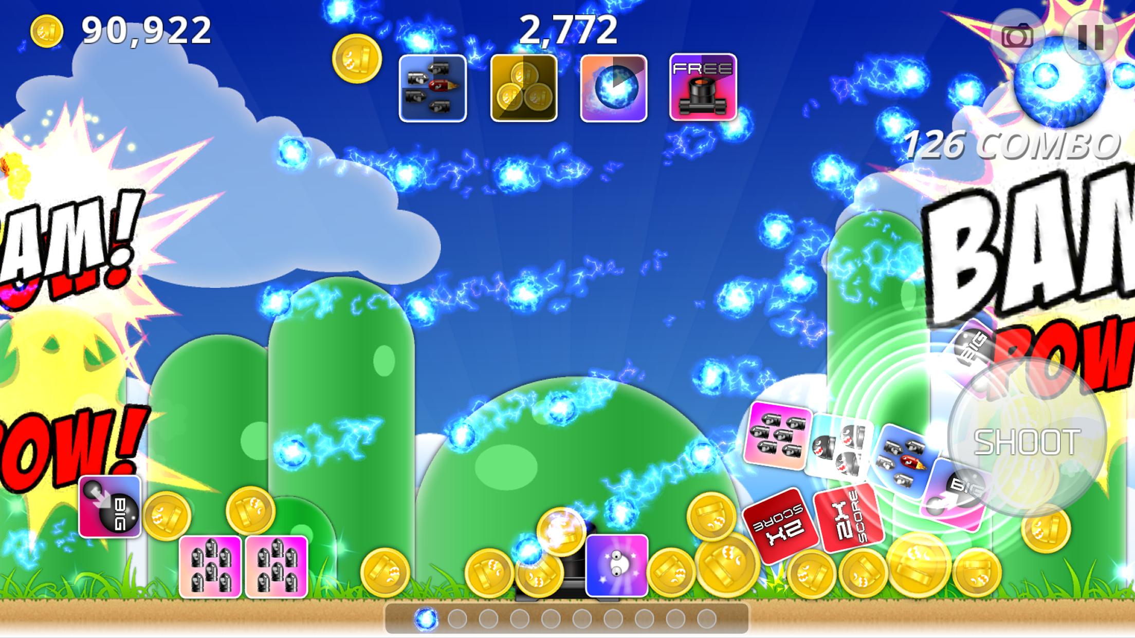 The sculpts of the enemies in the game are lovely and diverse. There are different chain effects when eliminating different kinds of enemies. With this game you could not only experience the fun of killing enemies but also get some surprise. After wiping out the enemies, there are various kinds of items dropping from the air such as unlimited bullets, piercing bullet, special wave of enemies, collecting winged insect, large-scale bullet, etc. Picking up these items will enforce your power during the procedure of killing enemies. Meanwhile, collecting the dropping coins will help you strengthen the item you picked. All of these will help you enjoy the game with more interest and challenge higher record.