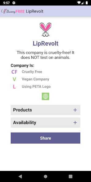 Check if a company is cruelty-free! Bunny Free lets you search for companies by name and tells you whether or not they test on animals. Browse all companies in the database, find cruelty free brands by product type, and share company testing results in version 2.0.