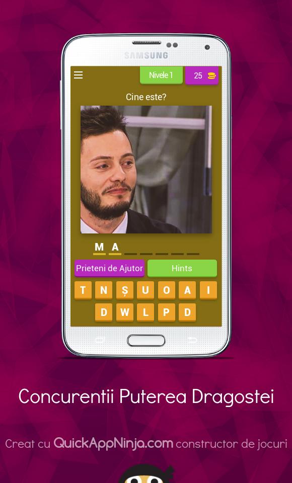 In this game you will have to guess the name of the competitor in the series of the power of love. If you like the game, do not forget to distribute it to your friends. Much success!