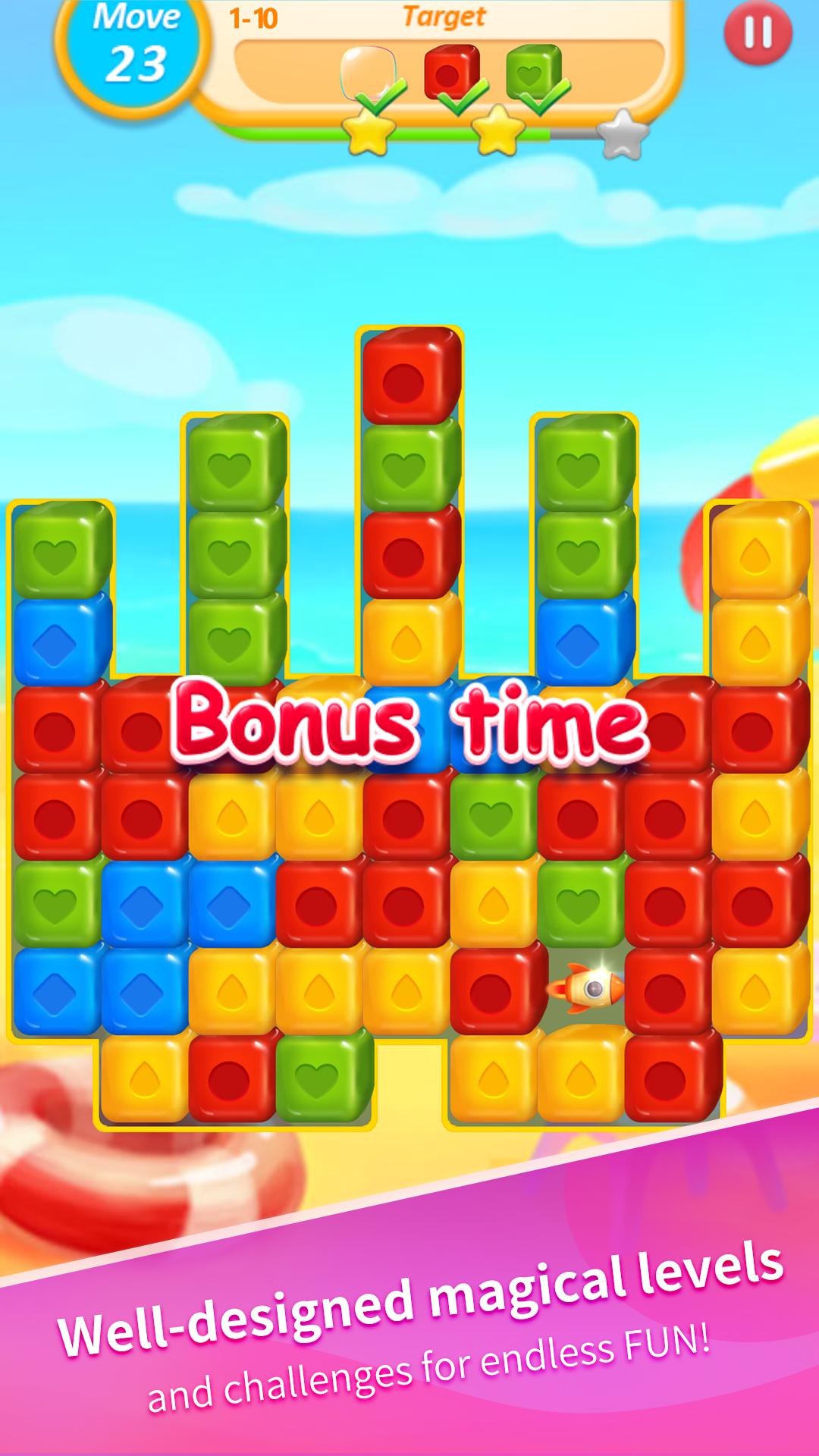 Your target in the game is to blast the blocks and solve the level puzzle, the more blocks you pop the better boosters you will get that will help to to solve the puzzle and bring down all the cubes to blast.