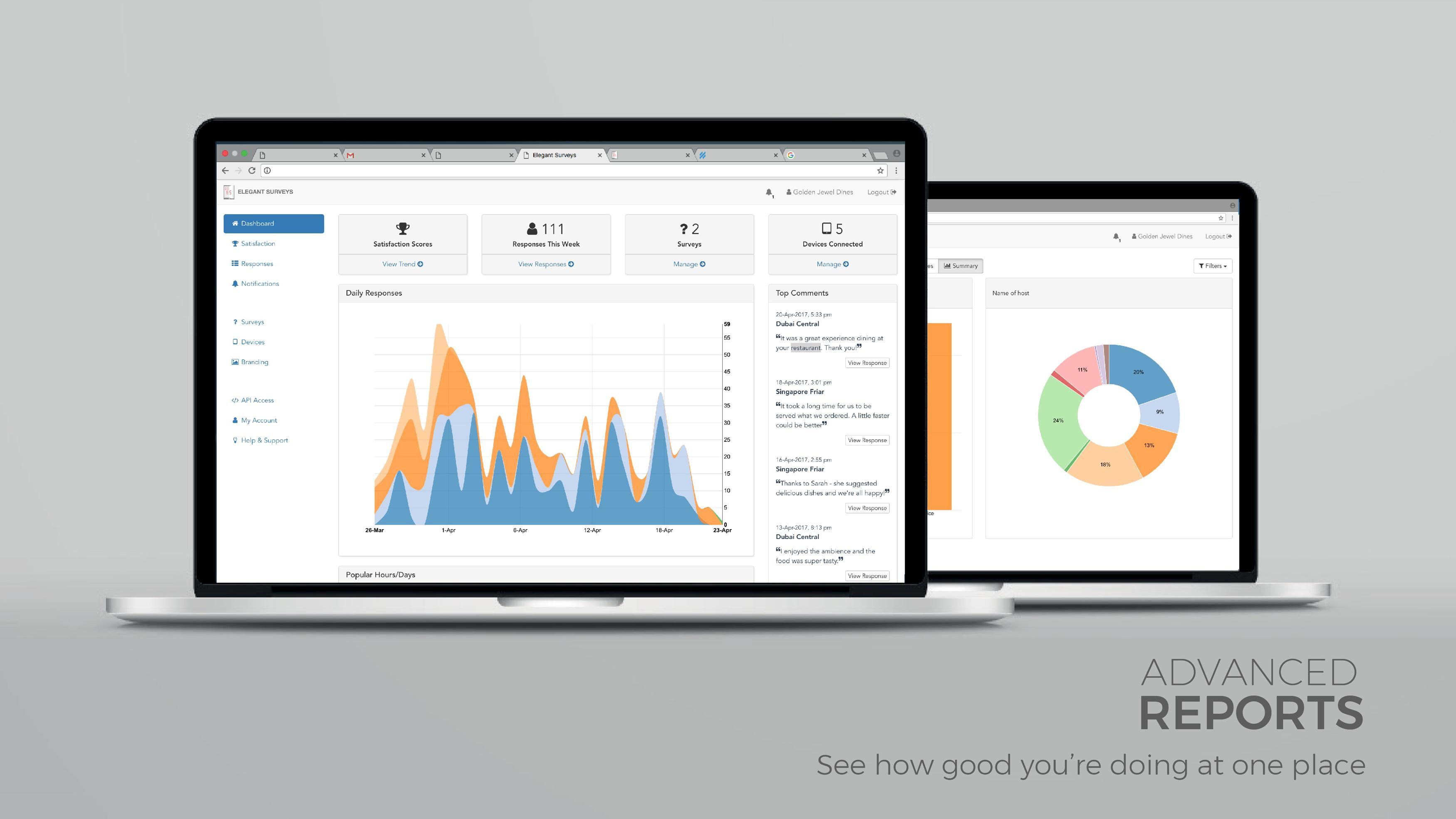Cloud dashboard with graphical reports, data analytics and alerts to track customer satisfaction and sentiments. Used globally by restaurants, salons, boutiques, retailers, hospitals, pharmacies etc. for Customer Feedback.