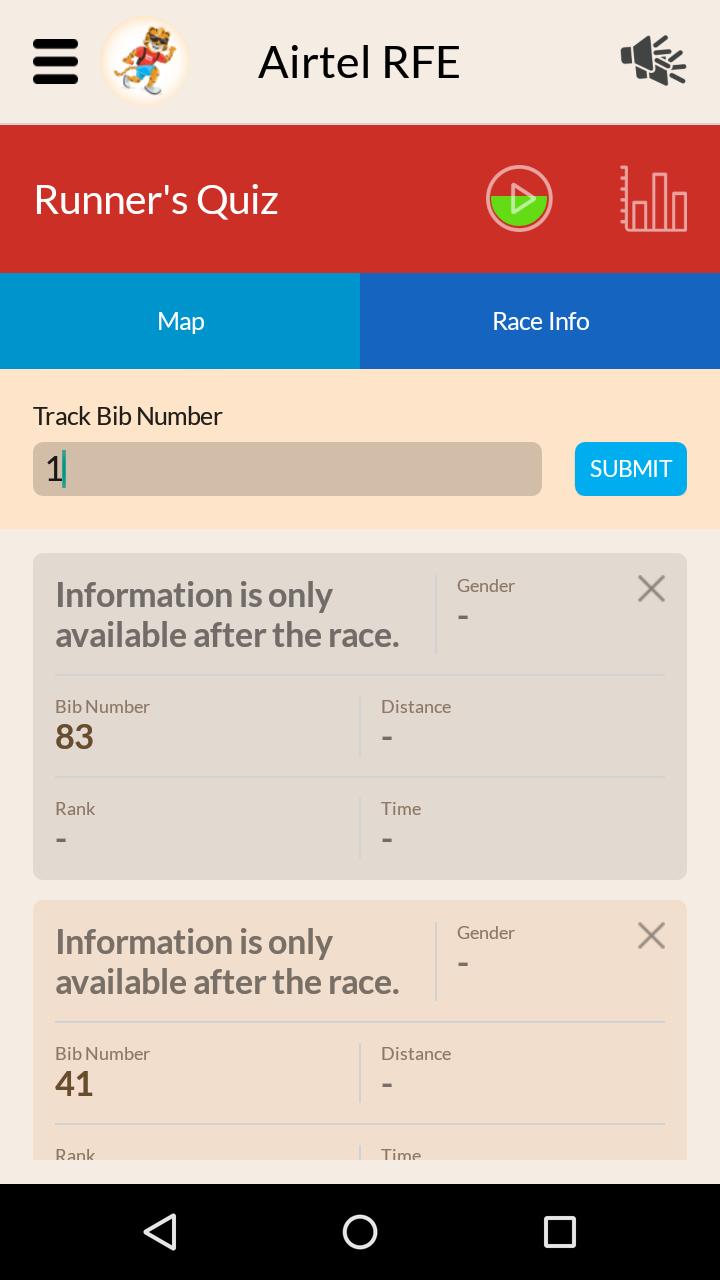 Nachdem das Rennen vorbei ist, werden Sie über die Rennzeiten der BIB -Nummern aktualisiert, die Sie verfolgen.