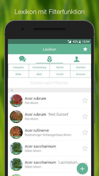 Mit der AndyGreen Pro -Bibliothek können Sie Ihre eigenen Lieblingsanlagenlisten erstellen. Jede Anlagenliste kann einzeln verwaltet werden. Diese Listen helfen Ihnen, bestimmte Pflanzen zu studieren oder sie direkt per E -Mail an Ihre Kunden oder Freunde zu senden.
