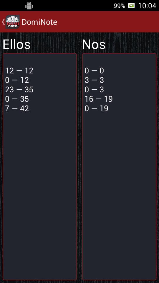 Punktzahl beibehalten App für das Domino -Spiel.