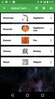 Es enthält auch eine Astralkarte mit Informationen zu Ihrem Zeichen, Dekanat, Element, chinesischem Horoskop und Maya -Horoskop .