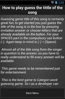 Dann sind Sie für die zweite Kategorie Spiele oder Vermutungen an die Texte. Hier finden Sie einige der Texte und natürlich ist es Ihre Aufgabe, jeden Song zu vervollständigen, der auf dem Bildschirm erscheinen wird. Wenn Sie korrekt antworten können, erhalten Sie den Wert von Münzen und wenn Sie falsch sind, verringern Sie den Wert der Münze.