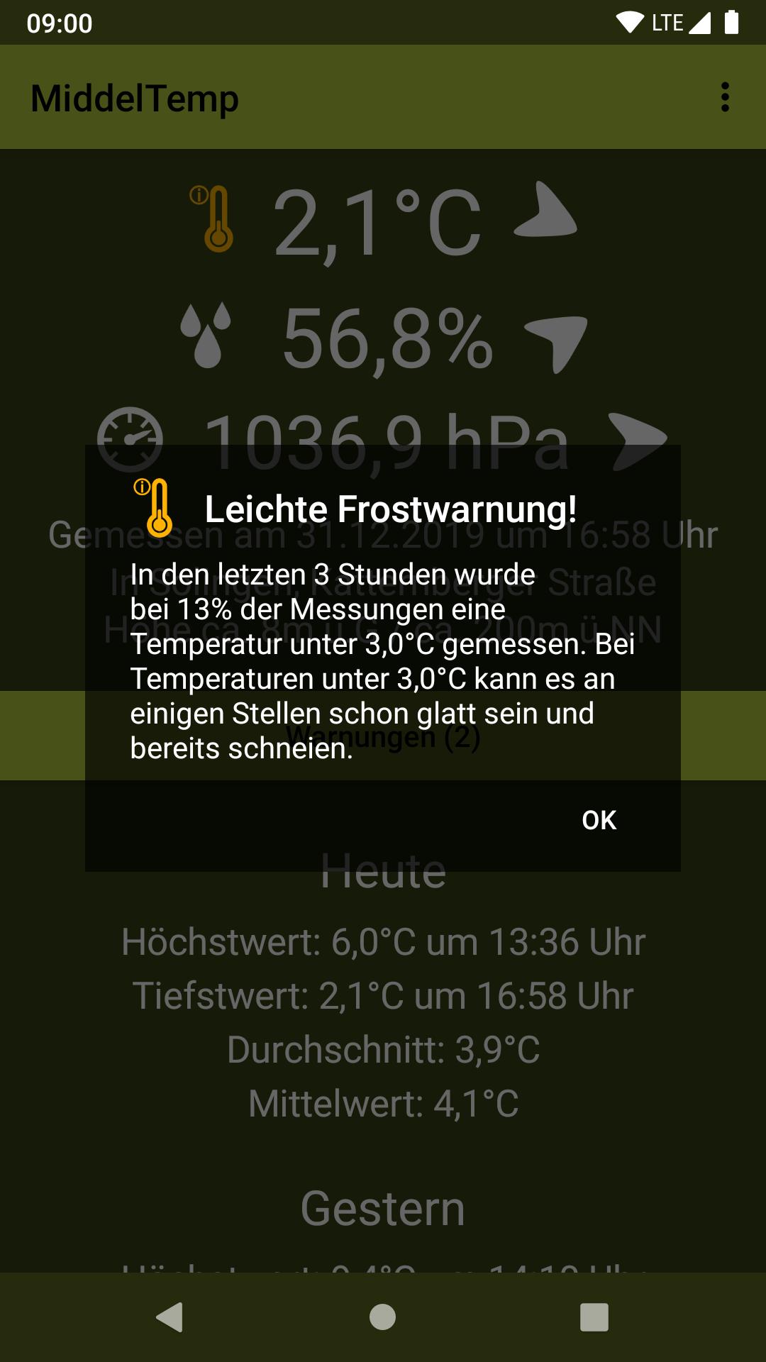 MiddelTemp ist eine regional orientierte Wetter-App mit minutenaktuellen Werten für Temperatur, Luftfeuchte und Luftdruck.