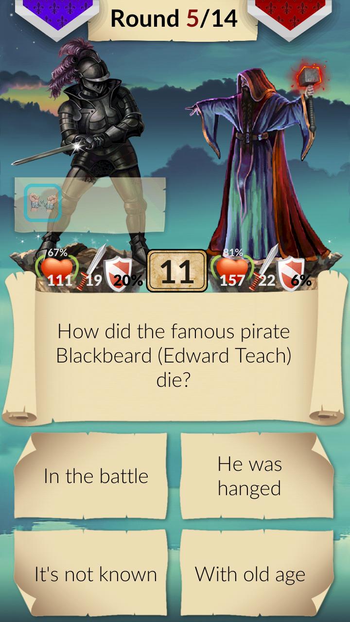 Besiege deine Gegner im Arcade -Quiz. Wählen Sie den Helden aus, den Sie mögen, entwickeln Sie seine Fähigkeiten und führen Sie ihn zu Siegen gegen Spieler aus der ganzen Welt!