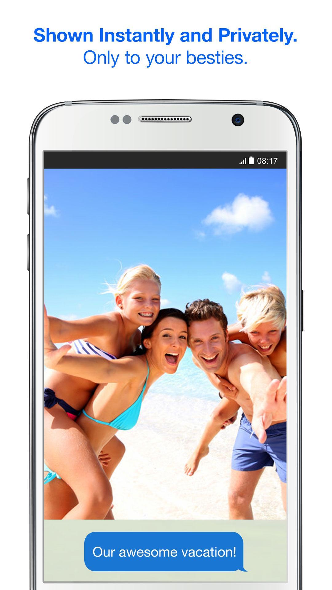 Genießen Sie eine unterhaltsame und einfache Möglichkeit, Ihre Bilder in einem Live-Echtzeit-Gespräch sofort und privat zu zeigen. Entspannen Sie sich und lächeln Sie, während Sie Ihren Freunden diese kostbaren Momente zeigen und ihre Kommentare lesen. Freunde erhalten keine dauerhaften Kopien Ihrer Fotos.