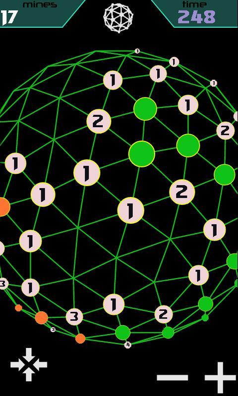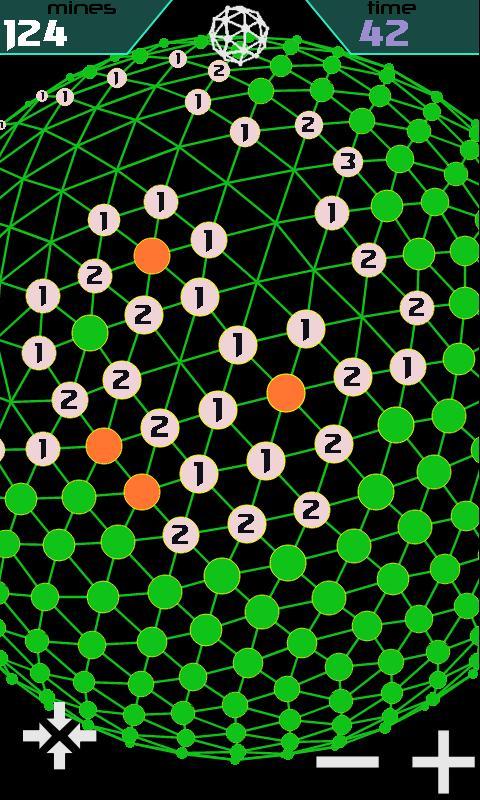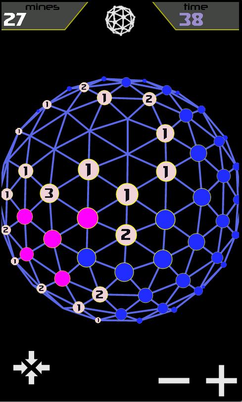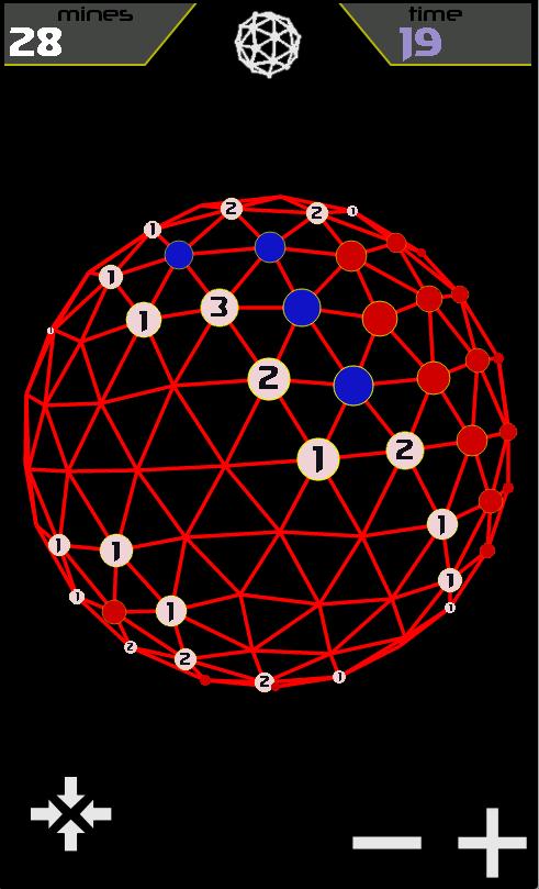 Eine große dreidimensionale Kugel voller Minen. Entwaffnen Sie den Ball mit Hilfe beim Vergleich der benachbarten Felder (jedes Feld zeigt die Anzahl der abgebauten Nachbarn). Einfache Regeln, süchtig machende Unterhaltung.