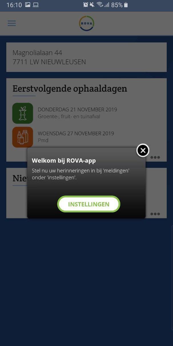 Die ROVA -App, die Sie immer der aktuellen Sammlungstage kennen.