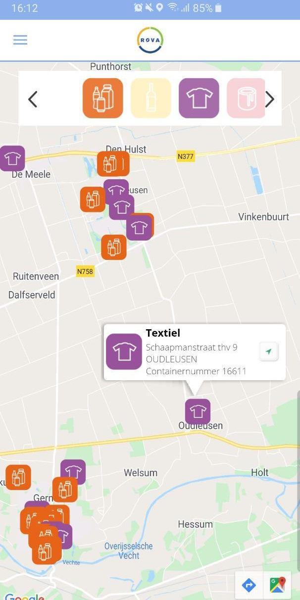 Darüber hinaus wissen Sie, dass Sie immer wissen, in welchem Behälter Ihr Abfall gehört. Und wenn Sie zu Hause keine Container haben, finden Sie Ihren Sammelbehälter schnell und einfach auf der Karte mit Sammlungsorten.