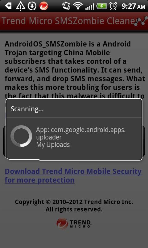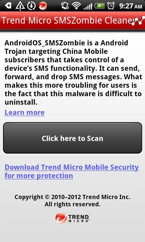 SMSZombie Cleaner ist kein Ersatz für eine Sicherheits -App wie die Trend Micro Mobile Security Personal Edition. Es handelt sich um eine schnelle Antwortanwendung, mit der Benutzer diese neue Trojananwendung sofort entfernen können.