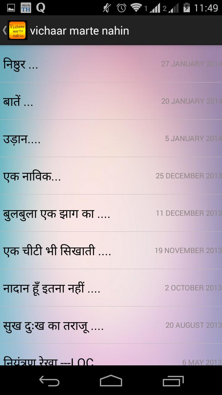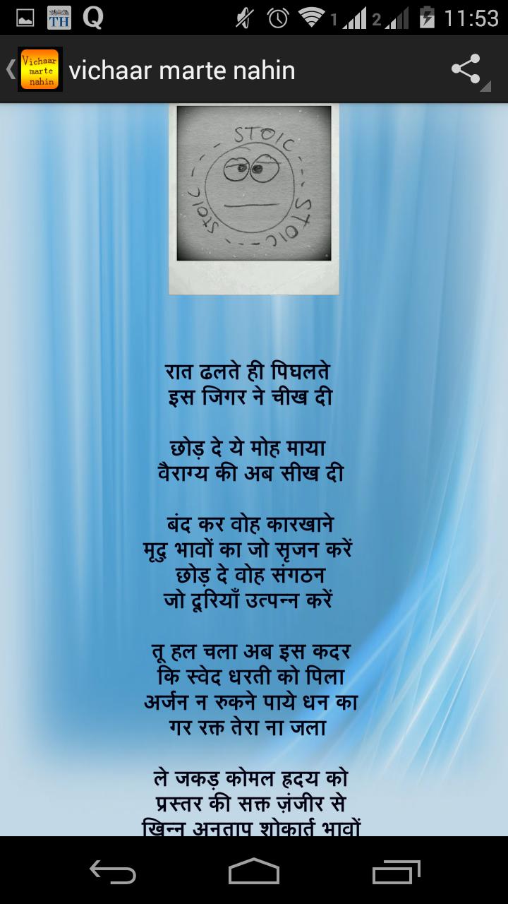 Vichaar Marte Nahin ist eine App, die aus meinen Lebenssammlungen besteht, die in Form von Hindi -Poesie zusammengestellt wurden. Hope Sie genießen es, dasselbe zu lesen, und in einigen Fällen werden sich mir sicherlich auf demselben Weg der Erfahrungen anschließen. Die verwendete Sprache ist Hindi mit einer einfachen Sammlung von Wörtern, die leicht zu interpretieren und zu fühlen.