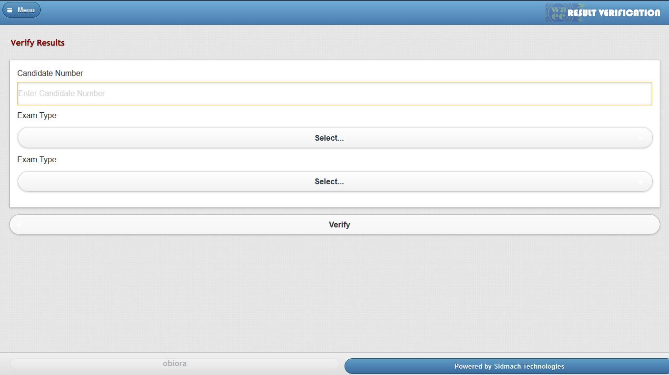 Die WAEC Results Verification Mobile ist eine attraktive Anwendung, mit der Kandidaten, Universitäten, Polytechnik, Bildungshochschulen, Organisationen und andere verwandte Institutionen jederzeit und überall auf der Welt die WAEC -Ergebnisse von Kandidaten überprüfen und überprüfen können.