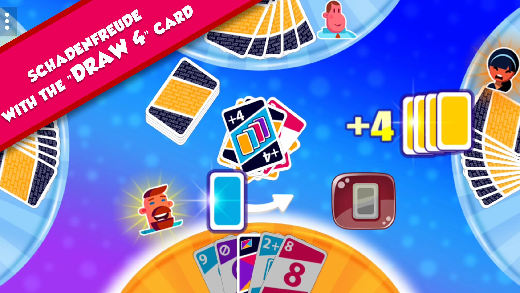 Duo Cards is based on one of the best selling card games in the world and follows the original rules with all the fun and frustration they may cause. If you have ever received two “+4” cards in a row you know what utter desperation is.