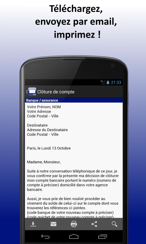 To sum up, with Easy Letters French , you can write, upload, email, share and print letters!