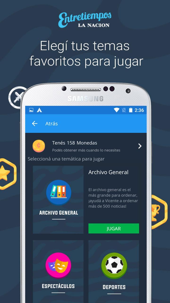 Thank you for playing Entretiempos the nation! We are already thousands of people helping Vicente and now you will be able to select the theme in which you want to participate. I chose between: shows, sports, technology, history and as always the general archive.