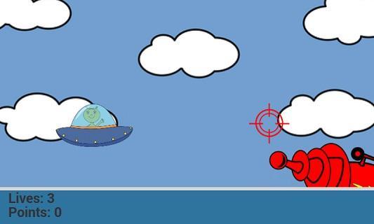 - Toca la pantalla para disparar al OVNI alienígena