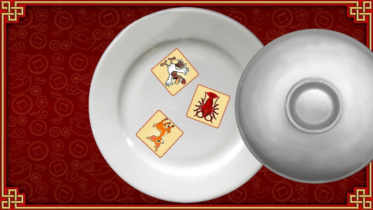 Los seis lados del dado, en lugar de mostrar una a seis pips, tienen fotos de un pez, un langostino, un cangrejo, un gallo, una calabaza calabaza y un ciervo. Los jugadores colocan apuestas en un tablero que tenga las seis imágenes, apostando en las que aparecerán las imágenes. Si un dado corresponde con una apuesta, lo mejor recibe la misma cantidad que su apuesta. Si dos dados se corresponden con una apuesta, lo mejor recibe dos veces su dinero. Si tres dados se corresponden con una apuesta, lo mejor recibe tres veces su dinero.