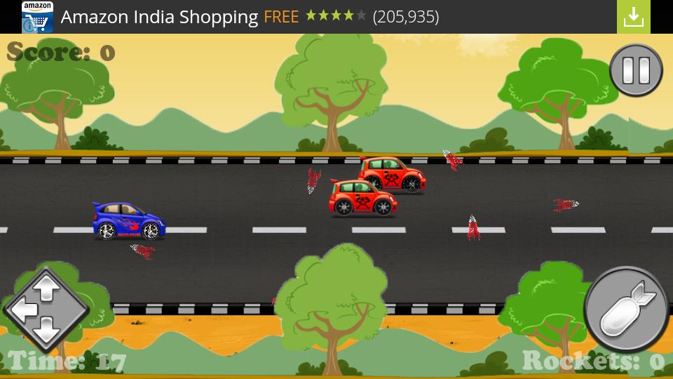 • Debe recolectar cohetes en el camino y luego presionar el botón Fire para lanzar un cohete para explotar los autos enemigos frente a él.