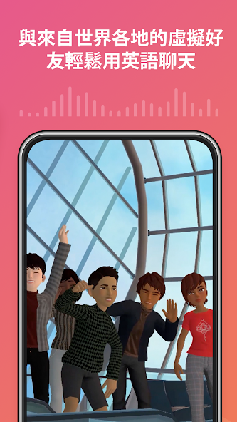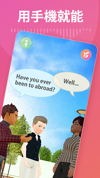 ¡Puede pasear libremente por el mundo virtual y tener conversaciones en inglés con personas de todo el mundo, como si estuviera experimentando estudiar en el extranjero con solo su teléfono inteligente!