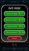 Si se atasca, puede revelar letras, eliminar cartas del tablero, mostrar la ubicación del equipo o publicar en su muro de Facebook para que sus amigos lo ayuden.
