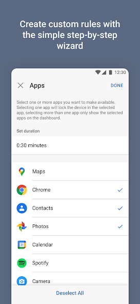 - Cree restricciones de aplicaciones programadas para el tiempo de tarea, la hora de acostarse y el tiempo de espera