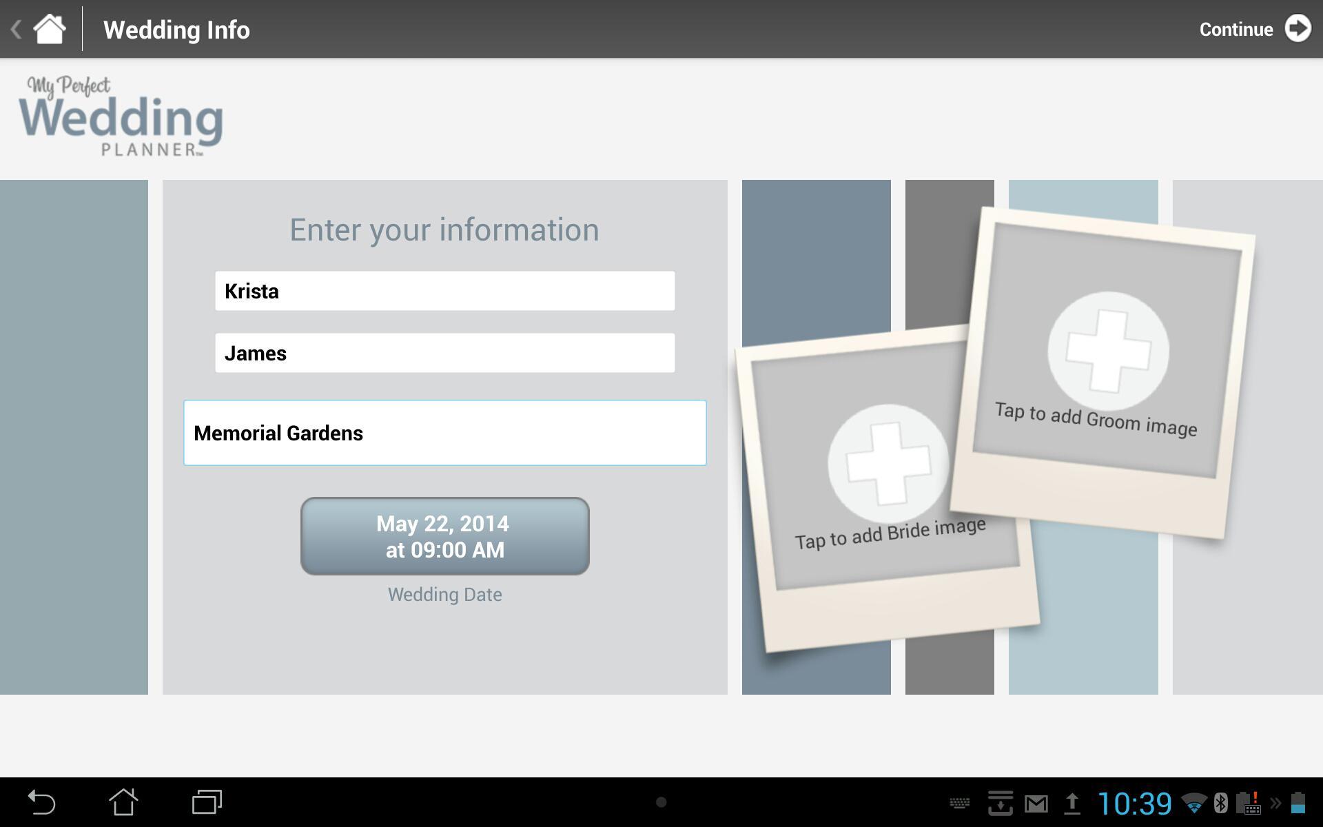 Mi planificador de bodas perfecto ofrece la mejor y más fácil forma de ayudarlo a planificar su gran día. Traído a usted por Summitsoft Corporation, los desarrolladores que han proporcionado a Marriott International su software de planificación de bodas durante más de 7 años. Mi planificador de bodas perfecto le permitirá llevar su planificación con usted en todas sus citas y mantener todo organizado en un solo lugar.