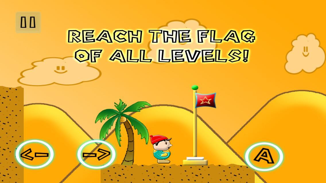 Trate de evitar todas las trampas para llegar a la bandera. Intenta vencer a todos los niveles.