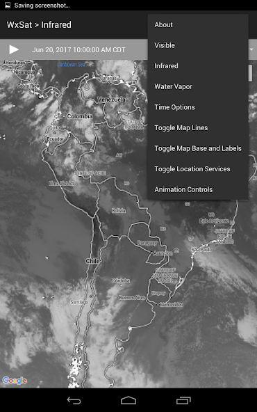 WxSat muestra y anima los datos satelitales meteorológicos de resolución completa y en tiempo real.