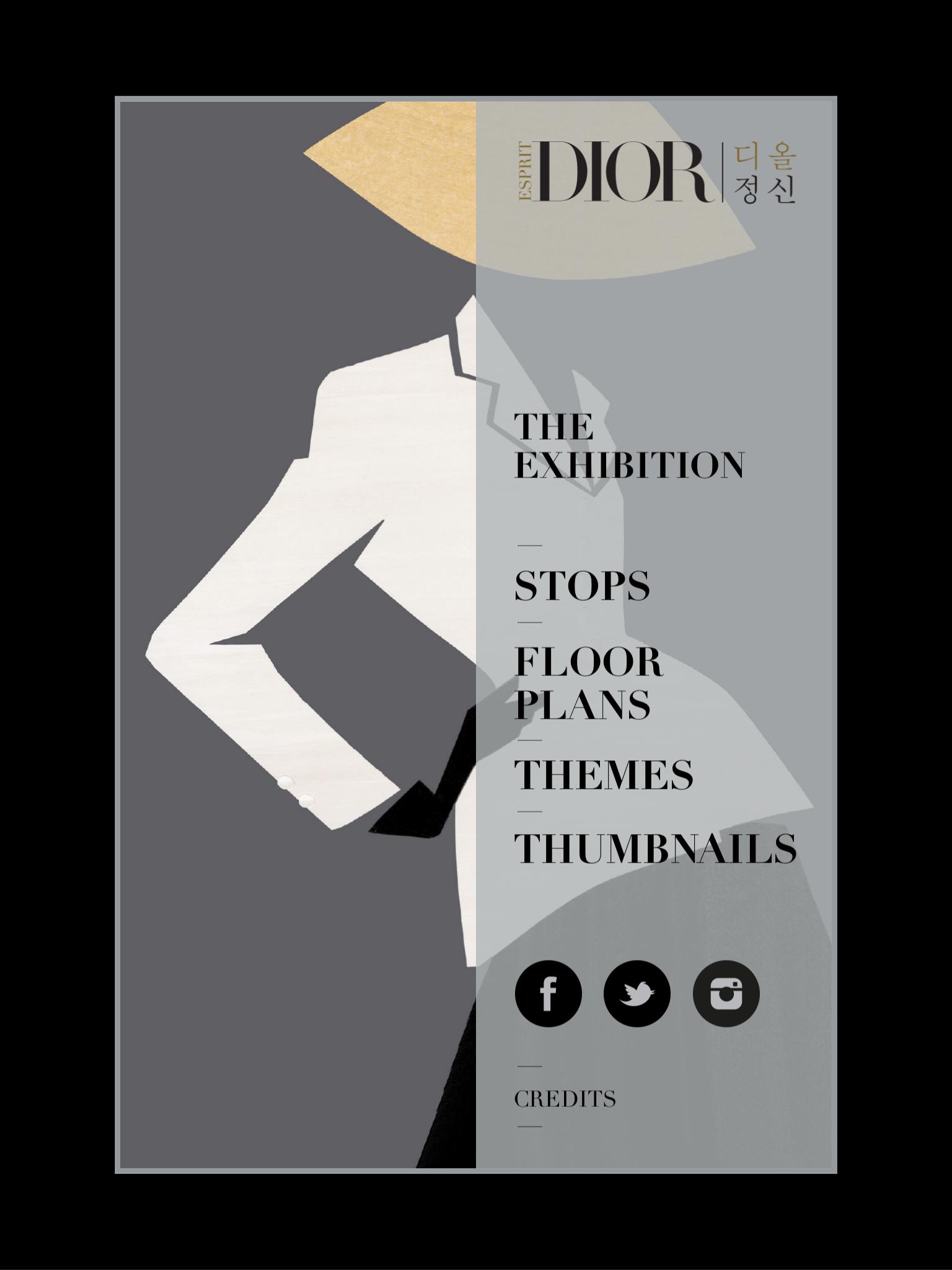 The application will serve as your guide to the Esprit Dior exhibition, opening the doors to the amazing legacy of the House of Dior thanks to its intuitive navigation: